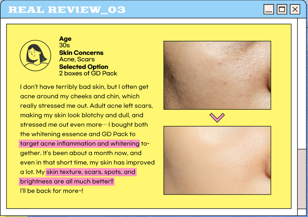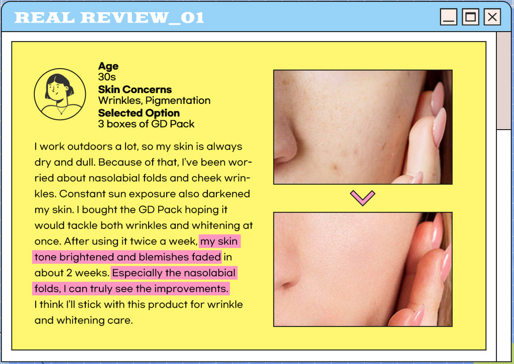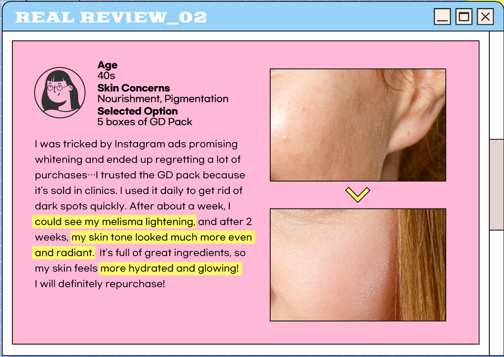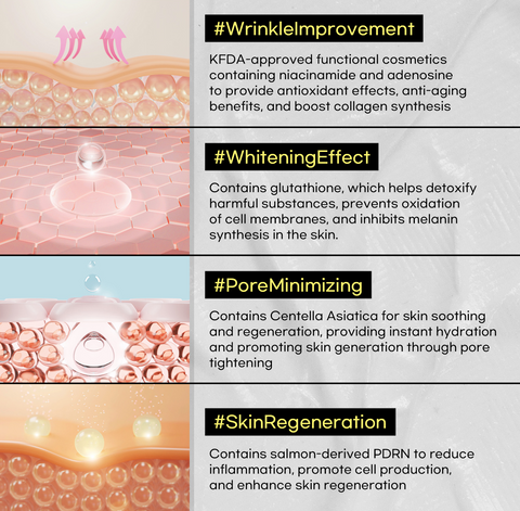 運用醫療專用配方,透過高濃度修護精華及無毒 / 一級認證天然面膜紙,其護理(Care)和治療(Cure)效果獲得韓國KFDA認證有效改善皺紋及美白皮膚,並能通過修復受損皮膚組織,改善泛紅、消炎及治療疤痕,效果獲得肯定。