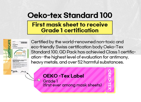 Dr.Blanc Gluthione Dual Pack Mask Pack面膜紙質已獲得Oeko-Tex standard 100